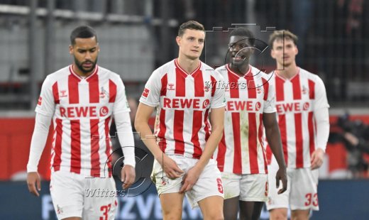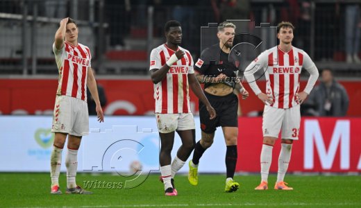 v.l. Linton Maina, Eric Martel, Ragnar Ache, Rav van den Berg (Koeln) nach dem 2:0 Tor