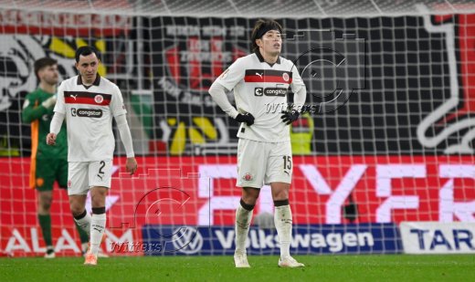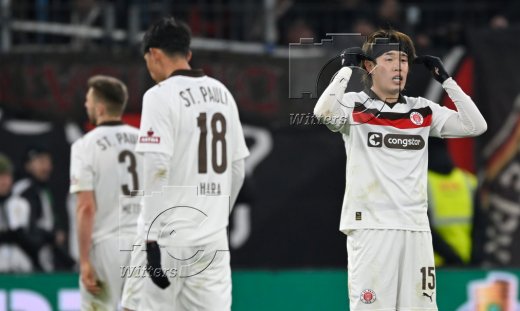 v.l. Manolis Saliakas, Tomoya Ando (St. Pauli) nach de, 3:0 Tor