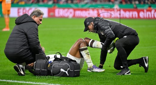 v.l. Verletzung Ricky-Jade Jones (St. Pauli), Mannschaftsarzt Dr. Volker Carrero, Schiedsrichter Florian Badstuebner, Dr. James Morgan (Performance Management, Leiter Praevention, Physiotherapie, Rehabilitation)