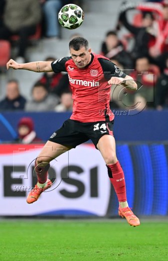 v.l. Granit Xhaka, Robert Andrich, Harry Kane (Bayern), Exequiel Palacios
