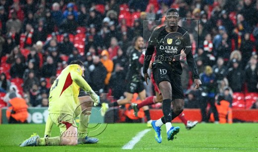 0:2 Tor, v.l. Torschuetze Ousmane Dembele (PSG), Torwart Giorgi Mamardashvili (Liverpool)
