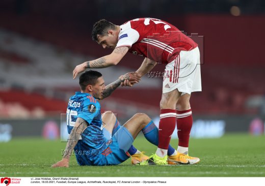 v.l. Jose Holebas, Granit Xhaka (Arsenal)