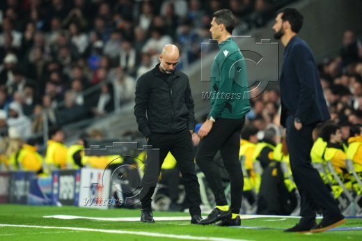 v.l. Trainer Josep "Pep" Guardiola (City), Trainer Alvaro Arbeloa (Real)