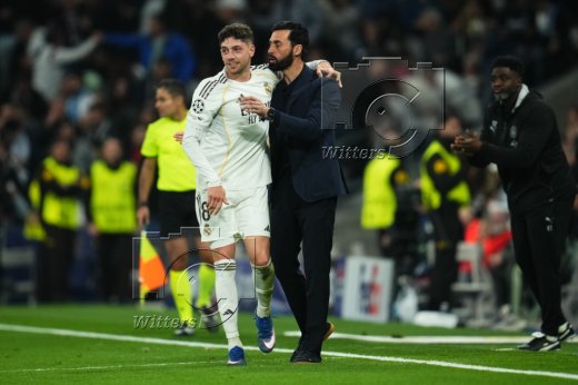 1:0 Tor, Jubel, v.l. Torschuetze Federico Valverde, Trainer Alvaro Arbeloa (Real)