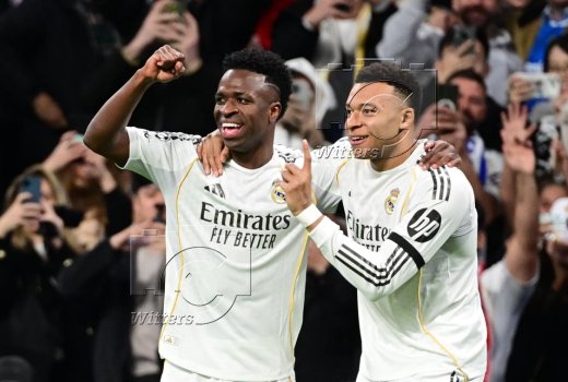 1:0 Tor, Jubel, v.l. Torschuetze Kylian Mbappe, Vinicius Junior (Real)