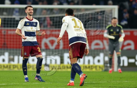 1:1 Tor, Jubel, v.l. Bakery Jatta, Nicolai Remberg, Torschuetze Fabio Vieira, Nicolas Capaldo, Miro Muheim (HSV)