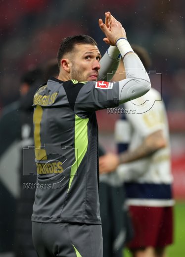 v.l. Torwart Daniel Batz (Mainz), Yussuf Poulsen (HSV)