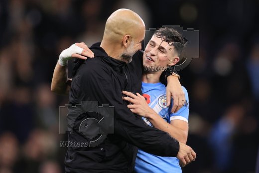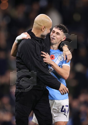 Schlussjubel, v.l. Trainer Josep "Pep" Guardiola, Phil Foden (Manchester)