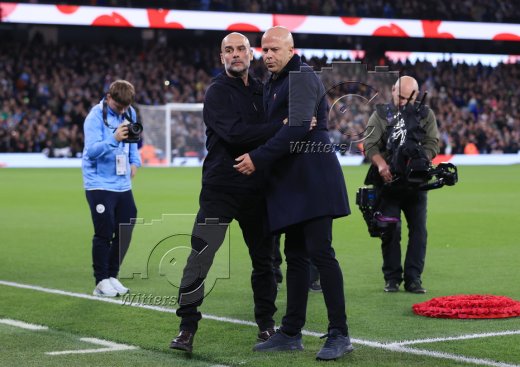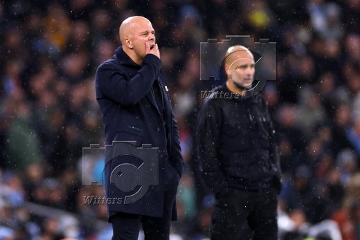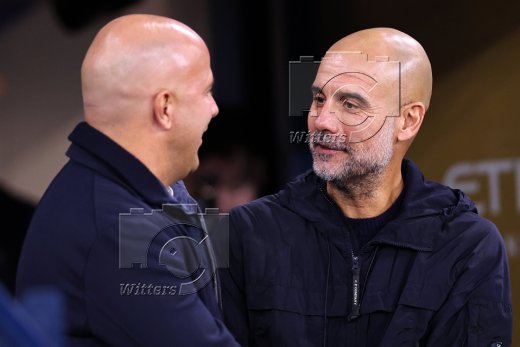 v.l. Trainer Arne Slot (Liverpool), Trainer Josep "Pep" Guardiola (Manchester)