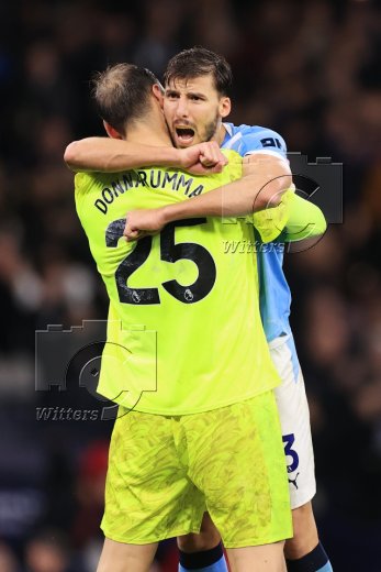 Schlussjubel, v.l. Torwart Gianluigi Donnarumma, Ruben Dias (Manchester)