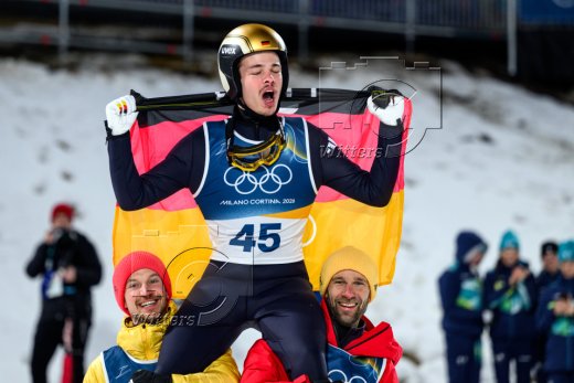 Predazzo, 09.02.2026, Olympische Winterspiele Milano Cortina 2026 (Mailand und Cortina d'Ampezzo / Italien), Skispringen, Herren, NormalschanzeGermany Only