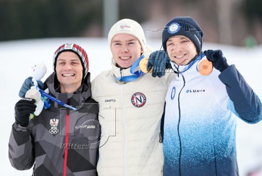 v.l. Johannes Lamparter (Oesterreich, Silber), Olympiasieger Jens Luraas Oftebro (Norwegen), Eero Hirovonen (Finnland, Bronze)