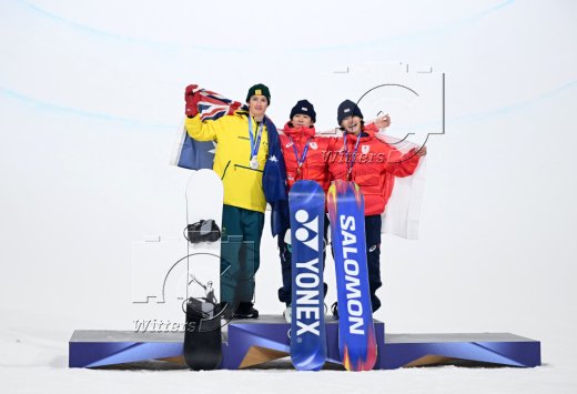 v.l. Scotty James (Australien, Silber), Olympiasieger Yuto Totsuka (Japan, Gold), Ryusei Yamada (Japan, Bronze)