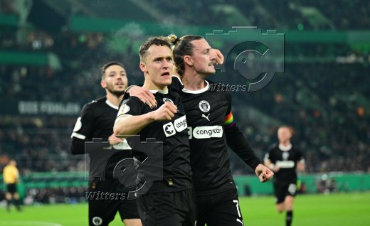 Schlussjubel, v.l. Jackson Irvine (St. Pauli), Eric Smith