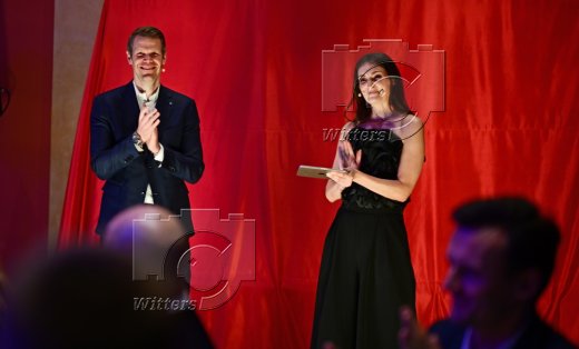 v.l. Dr. Eric Huwer (Vorstand Finanzen, HSV), Moderatorin Lisa Ramuschkat