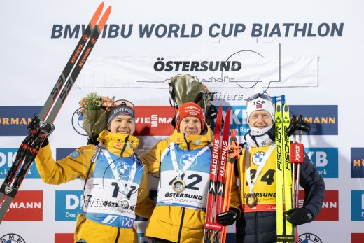 v.l. Justus Strelow (Deutschland, 2. Platz), Sieger Roman Rees (Deutschland), Johannes Thingnes Boe (Norwegen, 3. Platz)