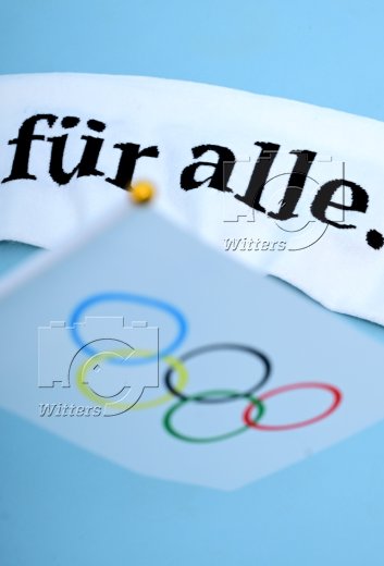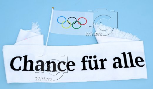Mannschaften mit dem Banner ''Eine Chance fuer Alle'' zur Olympia-Bewerbung Hamburg