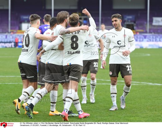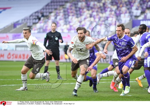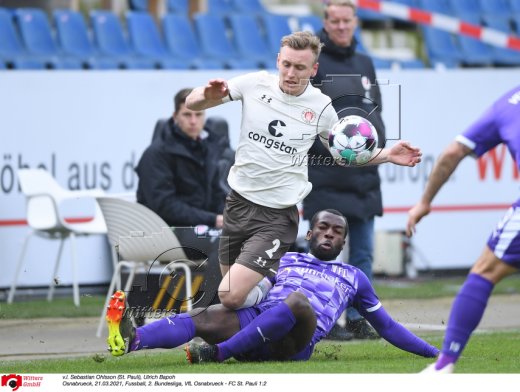Osnabrueck, 21.03.2021, Fussball, 2. Bundesliga, VfL Osnabrueck - FC St. Pauli 1:2