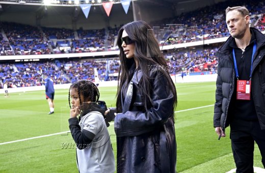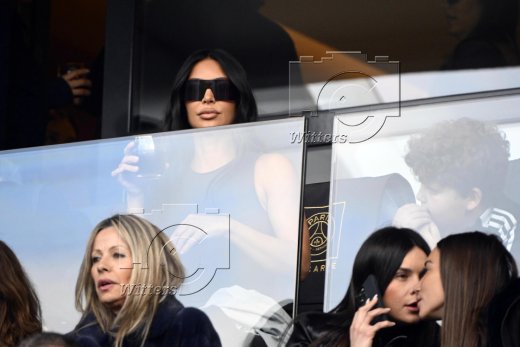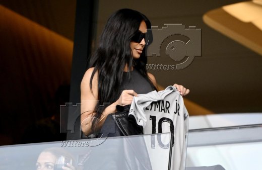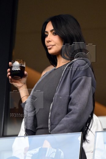 Reality-TV-Star Kim Kardashian (USA) als Zuschauerin auf der Tribuene mit Trikot von Neymar (Paris)