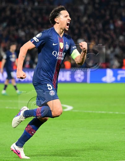 1:1 Tor, Jubel, v.l. Willian Pacho, Torschuetze Marquinhos (PSG)