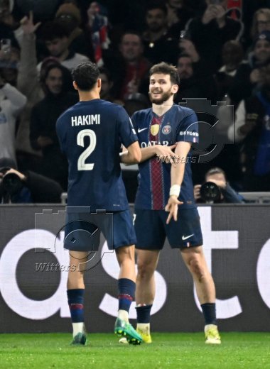 2:1 Tor, Jubel, v.l. Achraf Hakimi, Torschuetze Khvicha Kvaratskhelia (PSG)