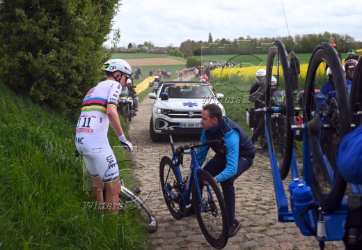 Mathieu van der Poel (Niederlande, Alpecin Deceuninck), Panne auf dem Waldweg bei Arenberg