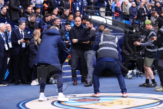 v.l. Trainer Josep "Pep" Guardiola (City), Trainer Mikel Arteta (Arsenal)