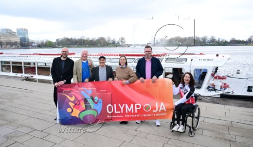 Hamburg, 14.04.2026, Olympische Spiele, Bewerbung Olympische und Paralympische Spiele in Hamburg, Initiative OlympJA, Pressekonferenz am Jungfernstieg