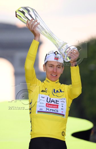 Gesamtsieger Tadej Pogacar (Slowenien, UAE Team Emirates) im gelben Trikot