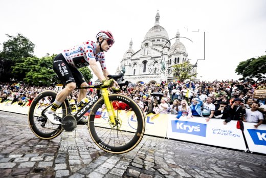 Tagessieger Wout van Aert (Belgien, Visma-Lease a Bike) vor der Basilika Sacre Coeur de Montmartre