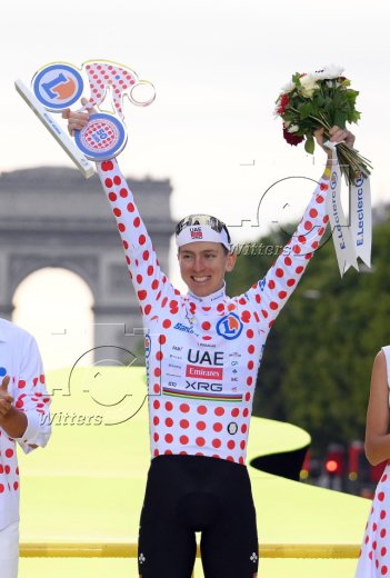 Tadej Pogacar (Slowenien, UAE Team Emirates), Sieger der Bergwertung im gepunkteten Trikot