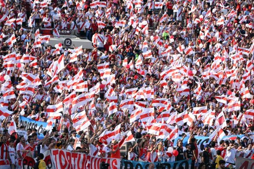Fans River Plate, Auseinandersetzung mit einem Fan des Stadtrivalen Boca Juniors Buenos Aires (in blau-gelb)