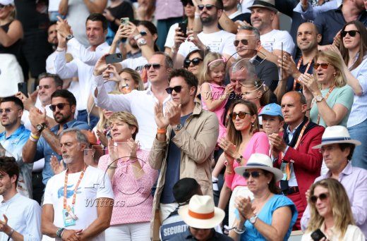 Mitte v.l. Quarterback Tom Brady (USA, American Football), Jelena Djokovic (Ehefrau von Novak Djokovic (Serbien))