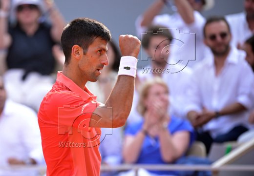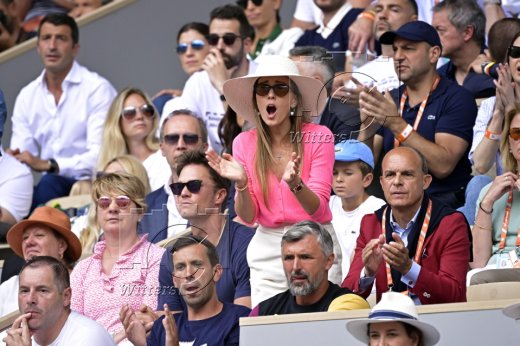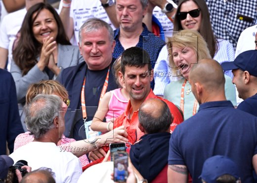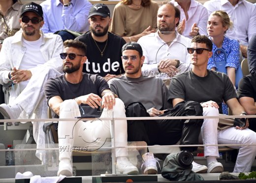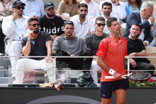 Novak Djokovic (Serbien), im Hintergrund v.l. Olivier Giroud, Theo Hernandez, Benjamin Pavard, Jordan Veretout (alle Fussball Frankreich)