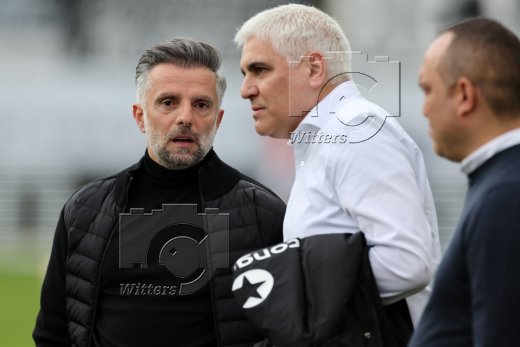 v.l. Trainer Tomas Oral (Sandhausen), Andreas Bornemann (Geschaeftsleiter Sport, St. Pauli)