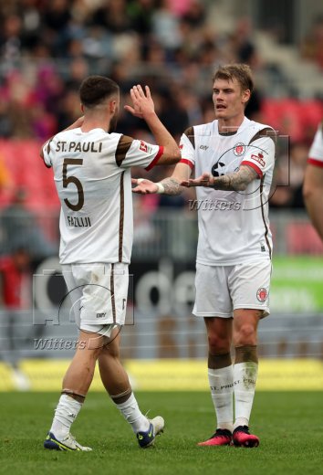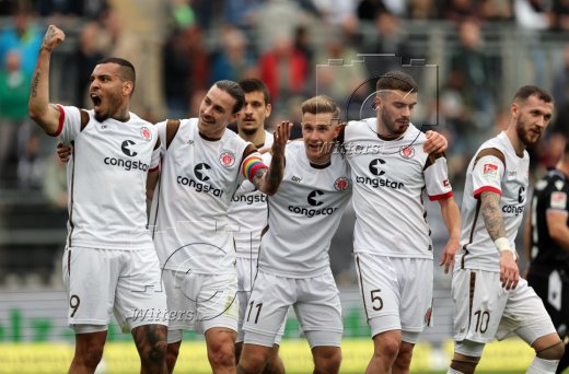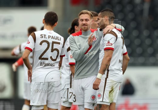 Schlussjubel v.l. Betim Fazliji, Eric Smith (St. Pauli)