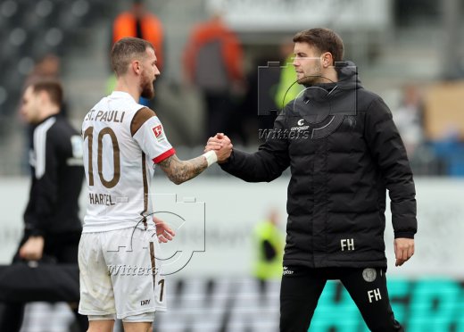 Schlussjubel v.l. Marcel Hartel, Trainer Fabian Huerzeler (St. Pauli)