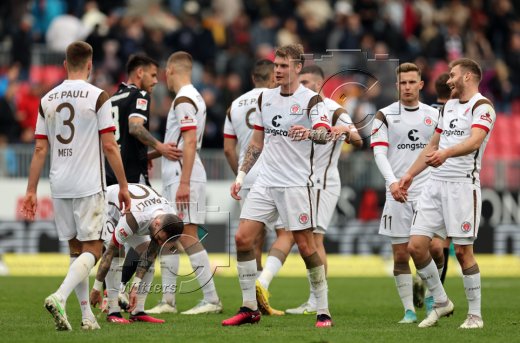 Schlussjubel v.l. Karol Mets, Marcel Hartel, Eric Smith, Johannes Eggestein, Lars Ritzka (St. Pauli)