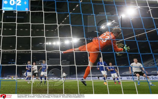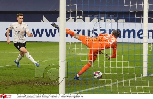 0:3 durch Eigentor v.l. Matthias Ginter (Gladbach), Torschuetze Torwart Frederik Roennow (Schalke)