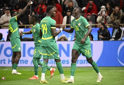 1:0 Tor, Jubel, v.l. Moussa Niakhate, Torschuetze Pape Gueye (Senegal)