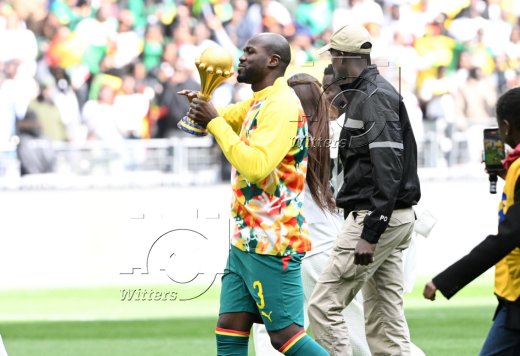 Kalidou Koulibaly (Senegal) mit Pokal vom CAF Afrika-Cup 2025 in Marokko (annulliert, Marokko wurde zum Sieger erklaert)