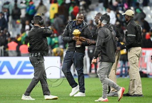 Trainer Pape Thiaw (Senegal) mit Pokal vom CAF Afrika-Cup 2025 in Marokko (annulliert, Marokko wurde zum Sieger erklaert)