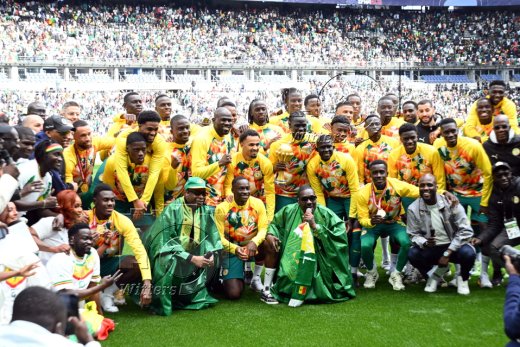 Team Senegal mit Pokal vom CAF Afrika-Cup 2025 in Marokko (annulliert, Marokko wurde zum Sieger erklaert)