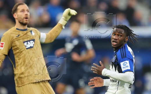 v.l. Torwart Oliver Baumann (Hoffenheim), Fabio Balde (HSV) Sinsheim, 13.12.2025, Fussball, Bundesliga, TSG 1899 Hoffenheim - Hamburger SV 4:1