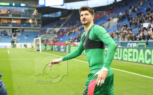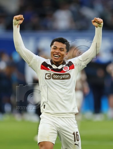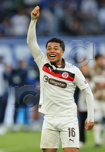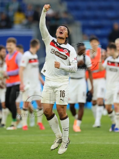 Schlussjubel, Torwart Nikola Vasilj (St. Pauli) mit Fan