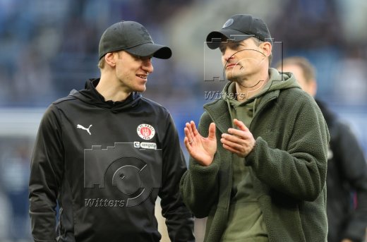 Schlussjubel v.l. Trainer Alexander Blessin (St. Pauli), Torwarttrainer Sven Van Der Jeugt