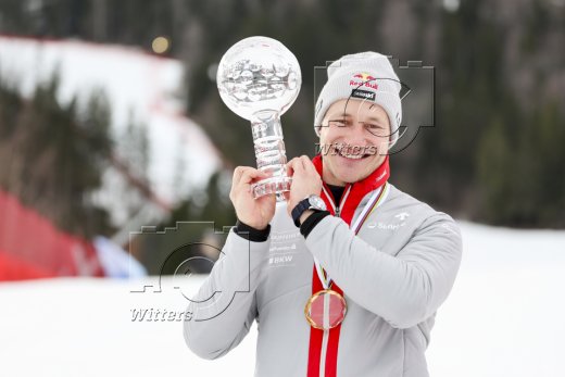 Weltcup-Gesamtsieg Super G, Gesamtsieger Marco Odermatt (Schweiz) mit kleiner Kristallkugel