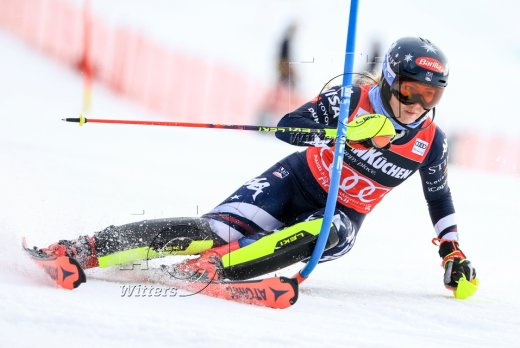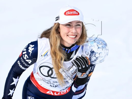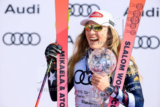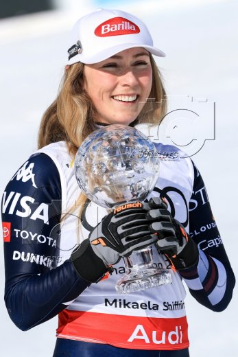 Weltcup-Gesamtsieg Slalom, Gesamtsiegerin Mikaela Shiffrin (USA) mit kleiner Kristallkugel