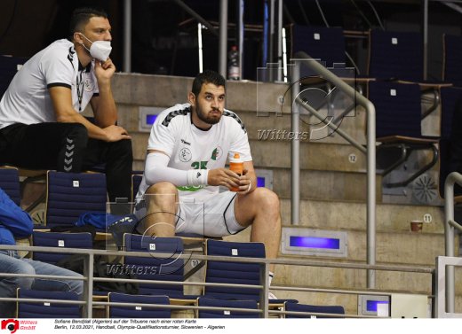 Sofiane Bendjilali (Algerien) auf der Tribuene nach einer roten Karte