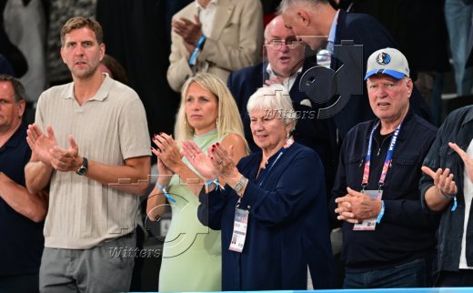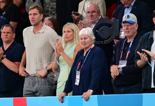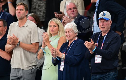 Dirk Nowitzki (Basketball, Deutschland) mit Schwester Silke Mayer (geb. Nowitzki) und seinen Eltern, Mutter Helga Nowitzki und Vater Joerg-Werner Nowitzki
